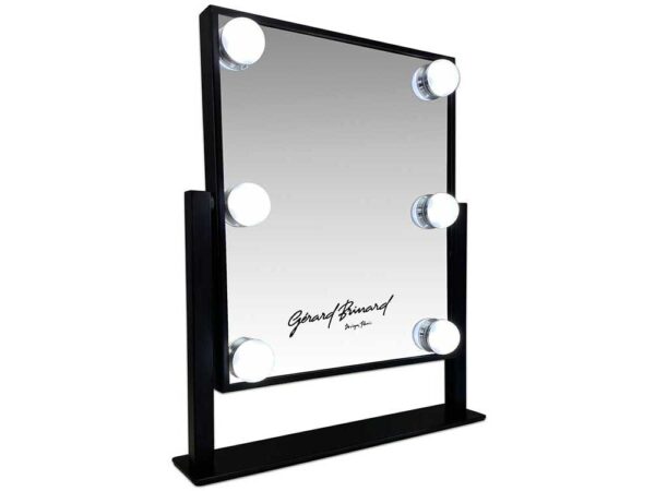Gerard Brinard Must Hollywoodi meigipeegel 6 X LED lambiga, mis on eluaegsed (kestavad 50 000 tundi) ja neid vahetada ei saa. LED-lampidel on 3 värvi – sinine, soe valge ja helevalge (päevavalgus). LED lambid töötavad 4 AA patareiga (ei sisaldu komplektis) või USB kaabliga (sisaldub komplektis). Peegel on äärmiselt tugev ja valmistatud metallist. Värvus: must. Mõõdud: 35x30x6 cm.