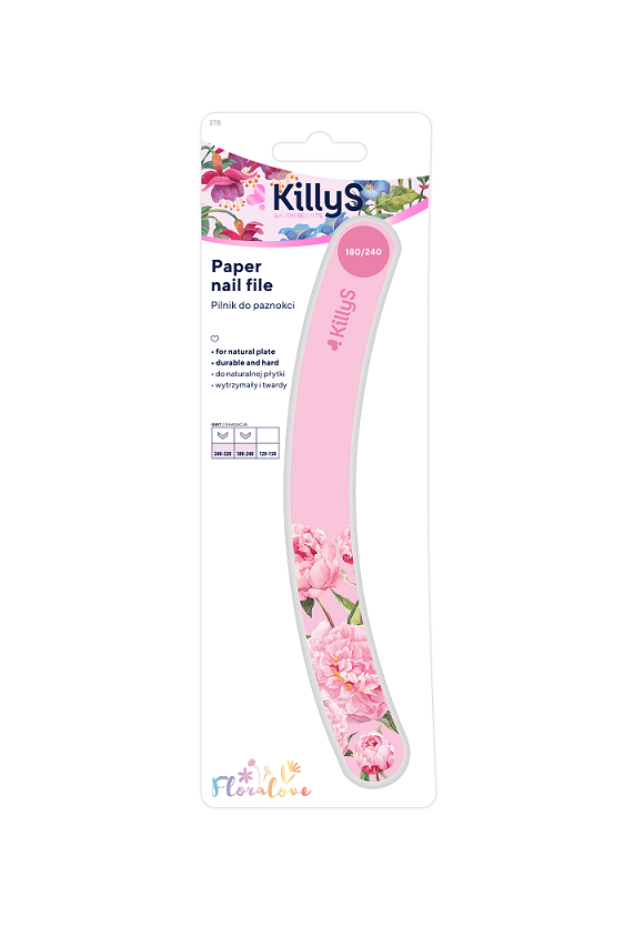 Küüneviil Floralove 180/240, roosa, kumer. Moodsa pastell- ja lilleprindiga viil populaarseima ja mugavaima kujuga. Naturaalsetele küüntele soovitatav 180/240 gradatsiooniga küüneviil. 180 gradatsioon on kasulik küünte lühemaks viilimisel ja nende kujundamisel. Gradation 240 silub küünte servad, sobib hästi ka õrnade, rabedate küünte viilimiseks.