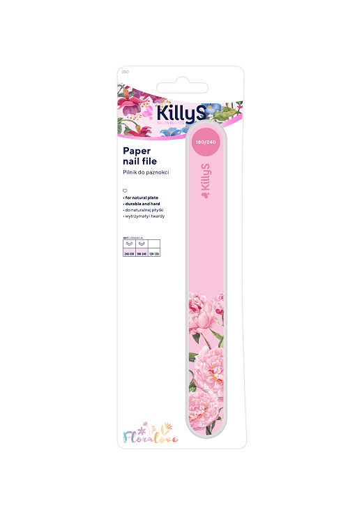 Küüneviil Floralove 180/240, roosa. Moodsa pastell- ja lilleprindiga viil populaarseima ja mugavaima kujuga. Naturaalsetele küüntele soovitatav 180/240 gradatsiooniga küüneviil. 180 gradatsioon on kasulik küünte lühemaks viilimisel ja nende kujundamisel. Gradation 240 silub küünte servad, sobib hästi ka õrnade, rabedate küünte viilimiseks.