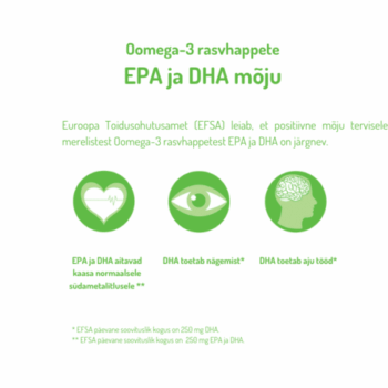 * EFSA andmetel on päevane annus 250 mg DHA-d